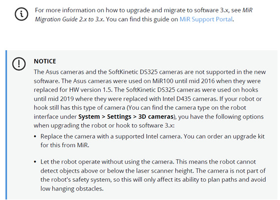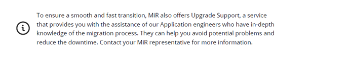 We recommend that your robots are running the latest version of software 2.x before upgrading. Find the latest software on MiR Support Portal.