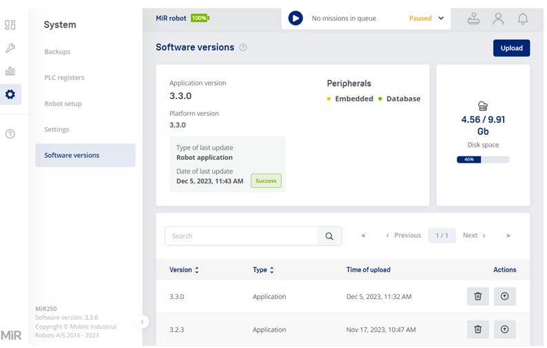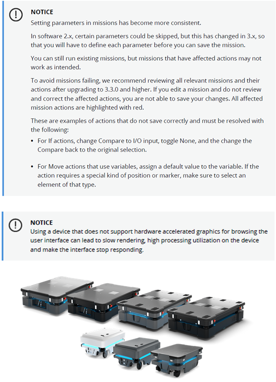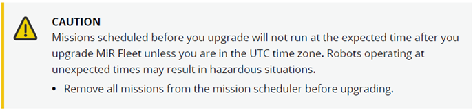 Due to these changes in the system structure, the method of upgrading both robots and MiR Fleet have changed.