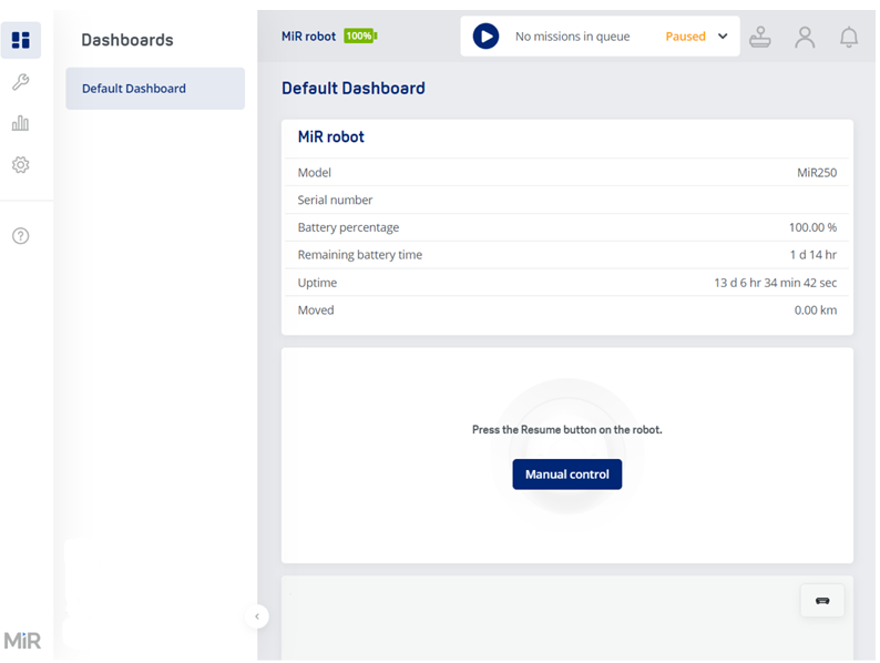The new user interface includes a notification system that informs about the progress of certain processes or the state of the robot or MiR Fleet. Error notifications are still provided in their usual format.