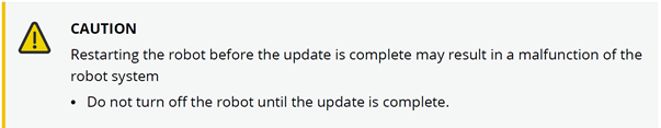 In rare cases, the power board would fail to connect to the light controller and would instead report the errors 'Connecting to Light control', 'Firmware upgrade failed', and 'Missing: Firmware upgrade failed'. To clear the errors, the robot had to be shut down and the battery disconnected for at least 15 s before restarting the robot. This issue has now been solved.